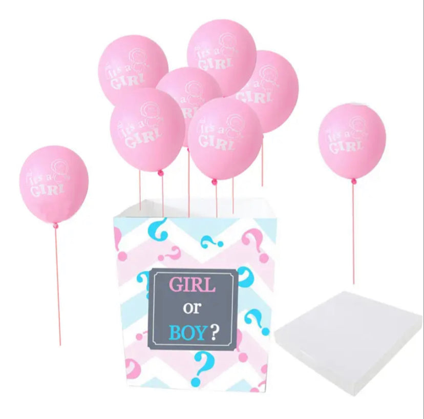 Cette boîte est fourni avec 4 ballons roses pour annoncer l'arrivée d'une petite princesse et 4 ballons bleus pour célébrer l'arrivée d'un petit prince.