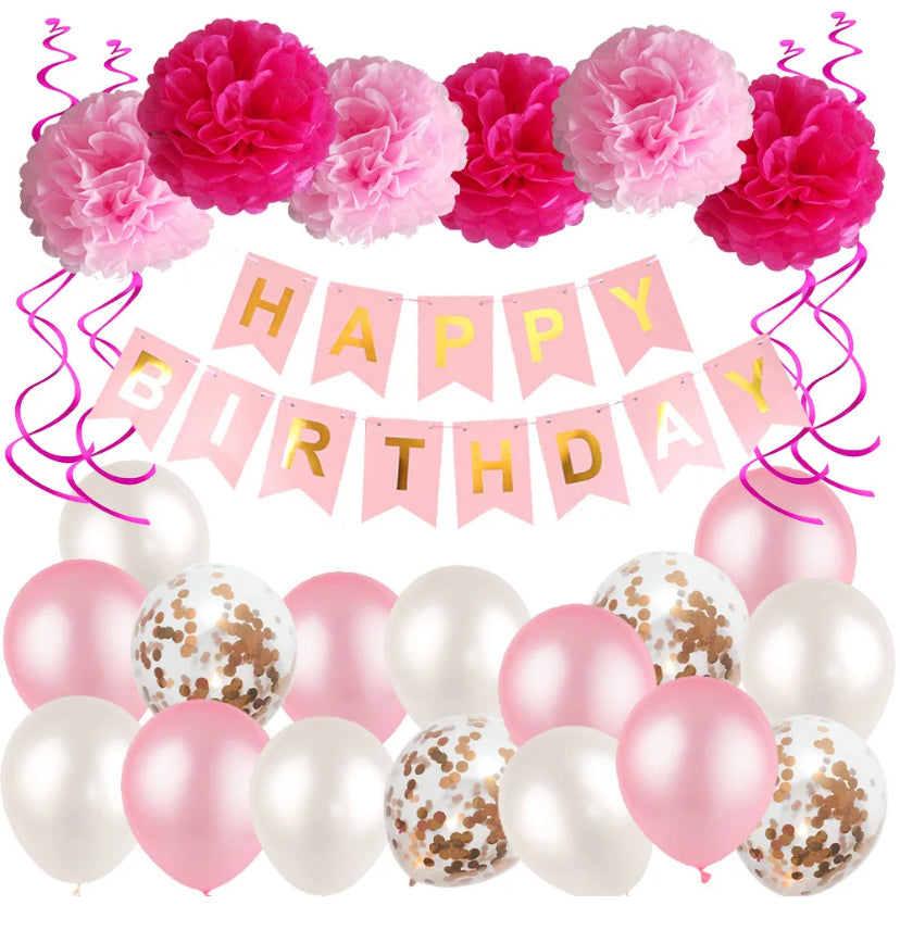 - 1 ensemble de banderoles "JOYEUX ANNIVERSAIRE" (roses, bleus ou verts),